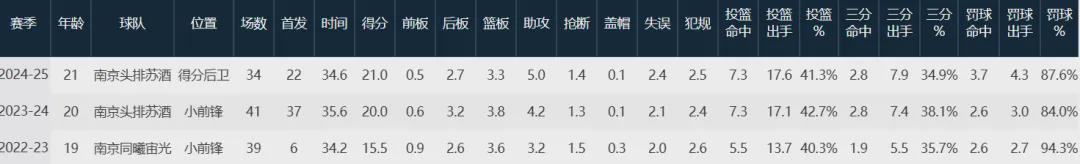 出生于2003年12月25日的林葳,今年21岁,已经在CBA有着三年职业联赛经历,上赛季打成本土得分王,常规赛场均砍下21分3.3板5助1.4断,季后赛则是场均狂轰30.5分6.5板11助1.5断。