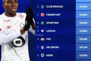 过去十年最大转会利润俱乐部排行榜:(不含自家青训球员交易)