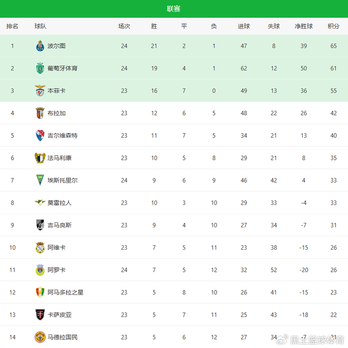 法甲大黑马朗斯做客斯特拉斯堡,多次与大巴黎互换榜首宝座,可上一轮在两球领先的情况下被摩纳哥逆转,此役又1-1被主队逼平,错失登顶良机,并且还多赛一场落后大巴黎1分,争冠压力倍增;葡超赛场,领头羊波尔图3-1阿罗卡,继续领跑,葡萄牙体育3-0完胜埃斯托里尔,穆帅的球队少赛一场,落后榜首10分,比老二少6分,争二依旧严竣;沙超赛场,小因扎吉率领的利雅得新月5-3拿下利雅得青年,多赛一场的情况下,积分追平排在第二的利雅得胜利,争冠进入白热化;另外,高居英超第三的维拉,大爆冷门客场0-2不敌副班长狼队,在多赛一场的情况下,仅比曼联多3分,本轮红魔要是拿下比赛的话,那么将杀到积分榜前四,卡里克要加油啊!